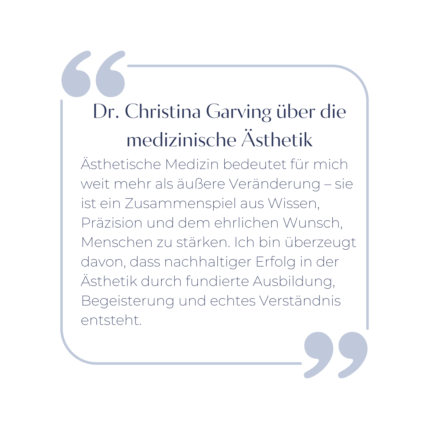 Ihr persönliches Interesse an ästhetischer Medizin entwickelte sich 2013, als sie nach fordernden Klinikdiensten den Wunsch verspürte, frischer und erholter auszusehen. Die erste eigene Botox-Behandlung markierte den Startpunkt für eine tiefgehende Spezialisierung im Bereich der minimalinvasiven Ästhetik. In den folgenden Jahren bildete sie sich kontinuierlich fort, besuchte internationale Kongresse und baute ihre Expertise in der ästhetischen und regenerativen Medizin systematisch aus.
